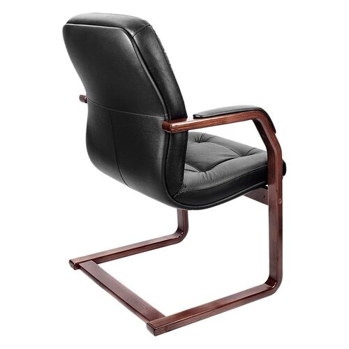 Кресло посетителя LEEDS WOOD C Кожа+компаньон Черная
