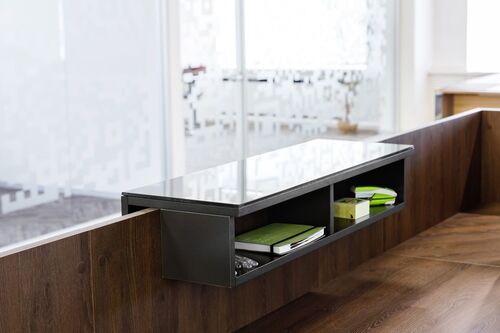 Стойки из ЛДСП стоят недорого, при этом срок их службы составляет много лет, что обуславливает высокую популярность изделий. Наша мебель для приемной отличается прекрасным качеством, полной безопасностью – ЛДСП не содержит вредных компонентов, что подтверждается сертификатами. Уход за столами и стойками очень прост, их поверхность гигиенична, легко моется, гладкая и приятная на ощупь.