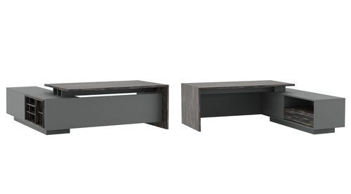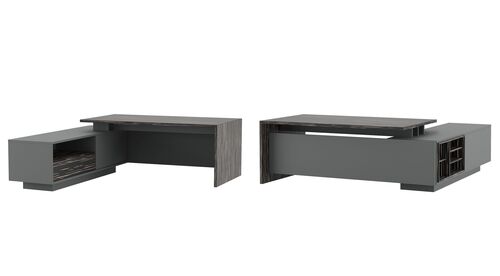 Шпонирование – популярный метод изготовления качественной мебели для дома и офиса. В ходе производства используют тонкие листы натуральной древесины ценных или экзотических пород, которыми оклеивают каркас из фанеры или деревянных щитов из более дешевых сортов. За счет небольшого расхода материала многие модели столов для руководителя стоят недорого, но по свойствам и эстетике абсолютно не уступают деревянным.