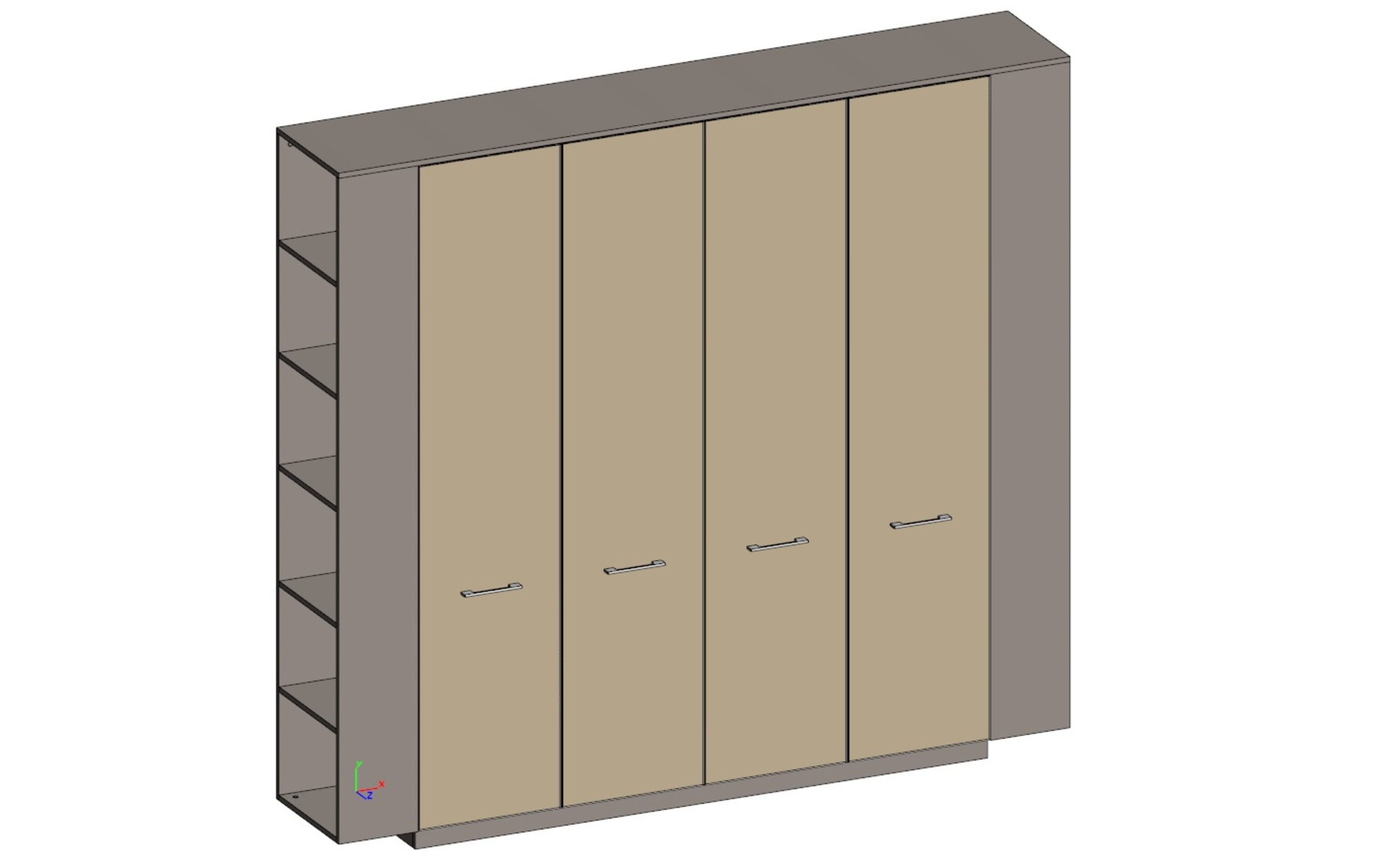 Двойной шкаф (для документов + гардероб) с боковыми стеллажами (двери в ал. рамке) JNS938