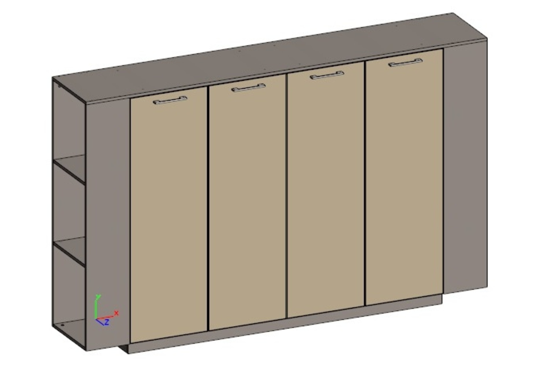Двойной шкаф средний универсальный с боковыми стеллажами (двери в ал. рамке) JNS929