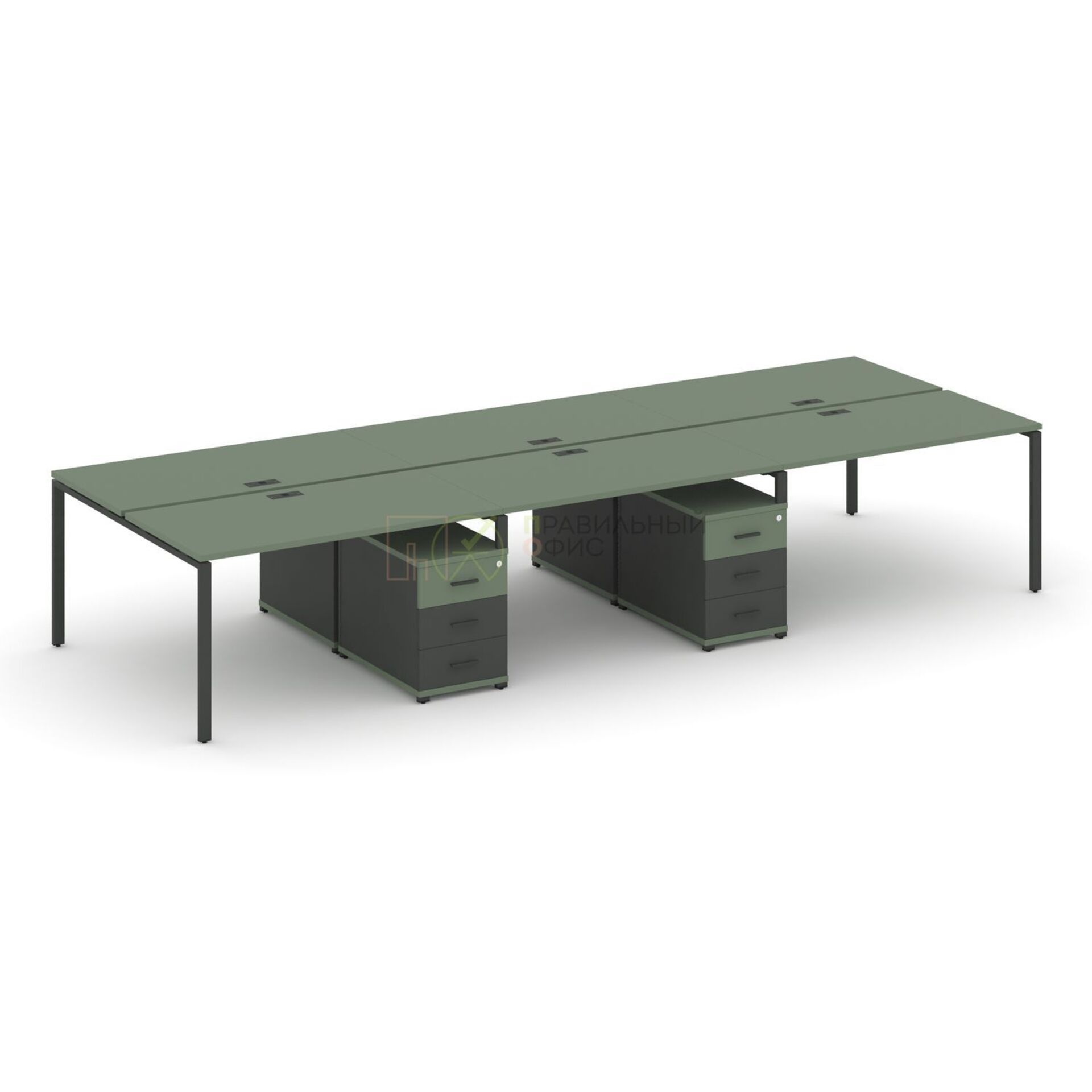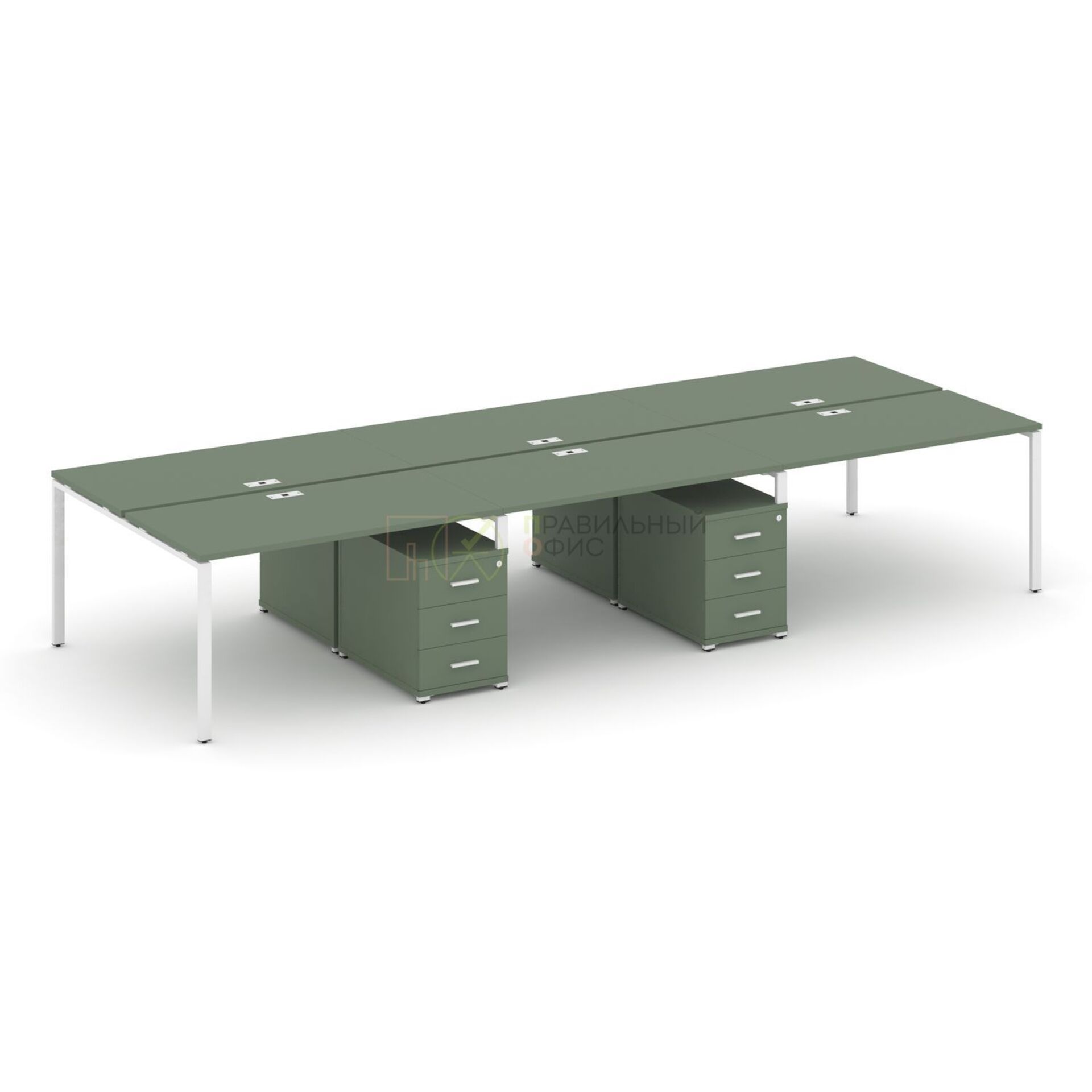 Рабочая станция на 6 мест с двумя двухсторонними опорными тумбами CN.DRS-344 A/B/W