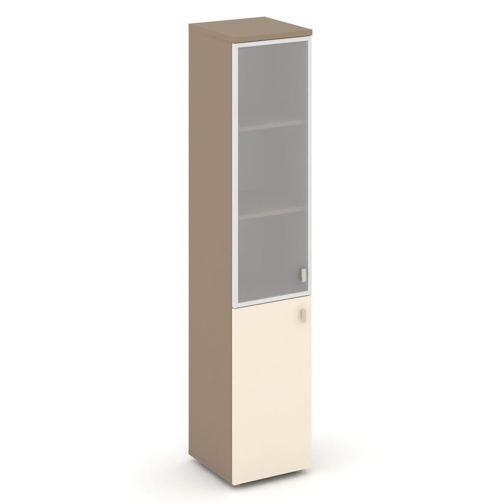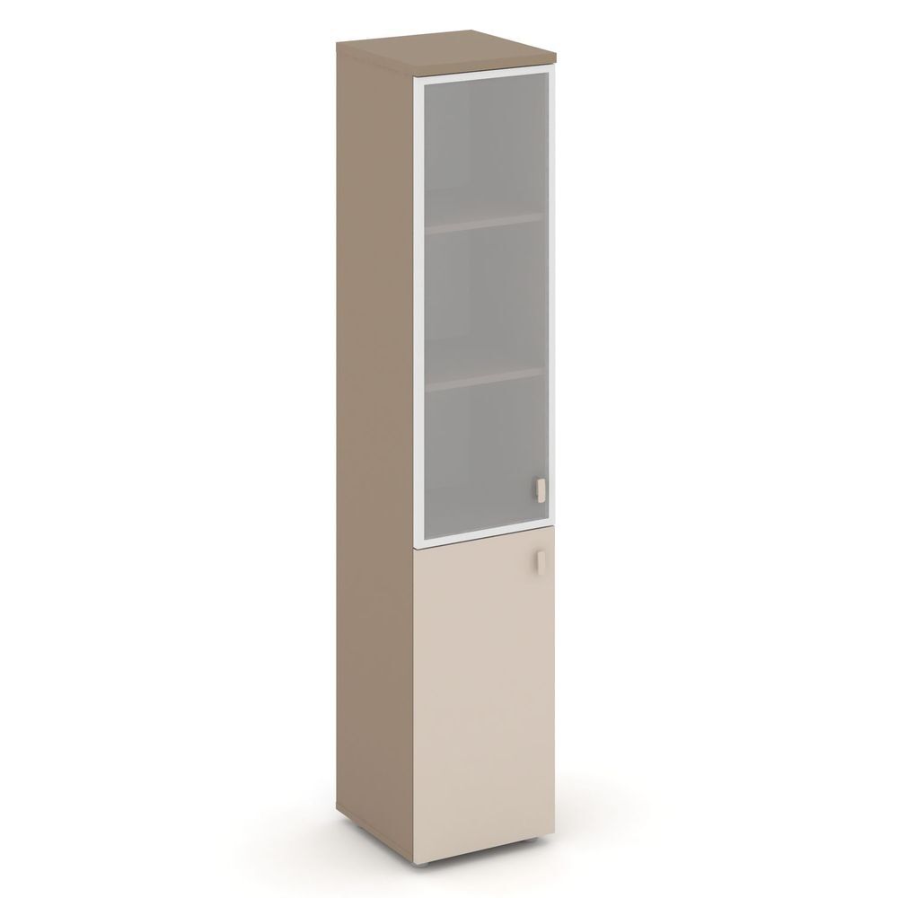 Шкаф высокий узкий левый (1 низкий фасад ЛДСП+1 средний фасад стекло в раме) ES.SU-1.2R (L)
