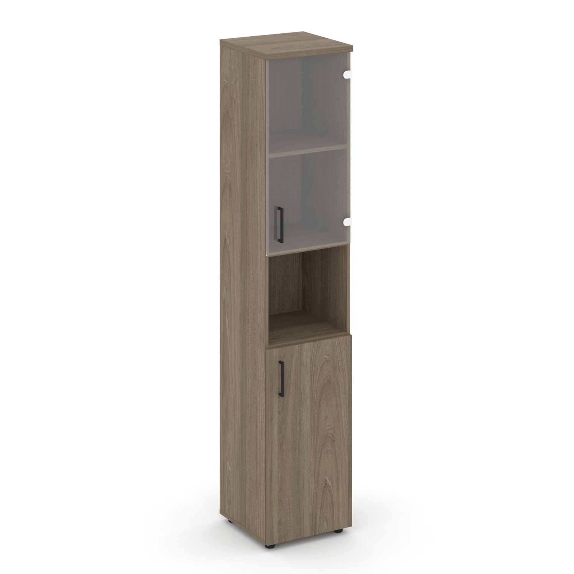 Шкаф высокий узкий правый (1 низкий фасад ЛДСП + 1 низкий фасад стекло прозрачное) SN.STU.E-105(R)